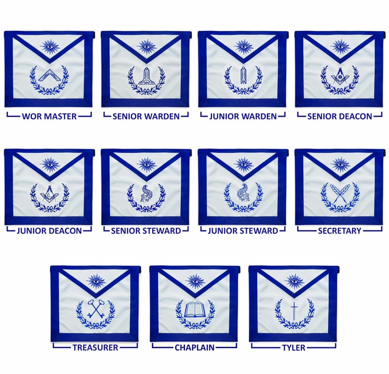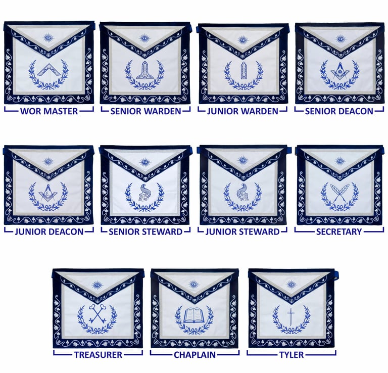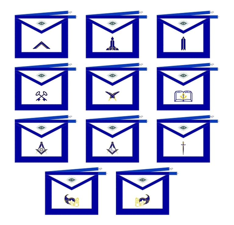 Blue Lodge Officers Masonic Apron Set of 11