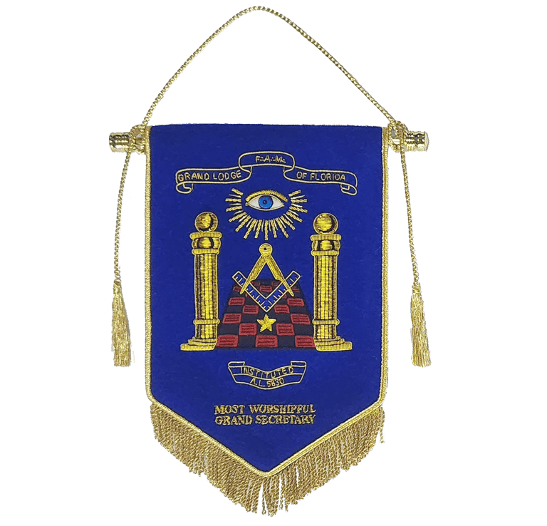 Custom Masonic logo Hand Embroidered, Machine Embroidered and Printed Pennants