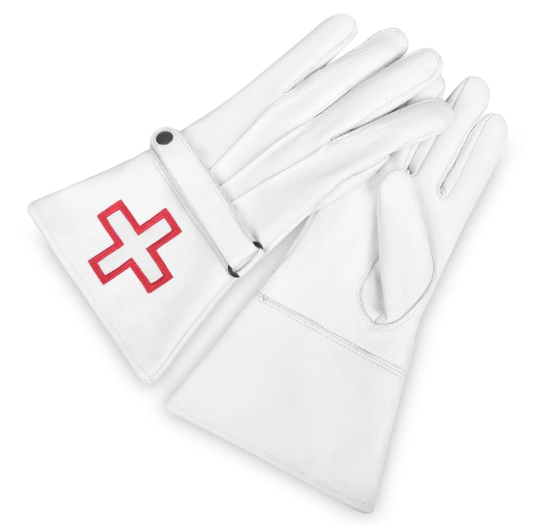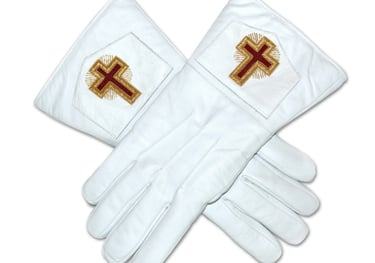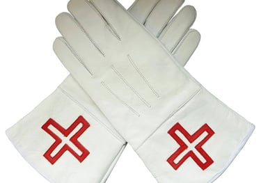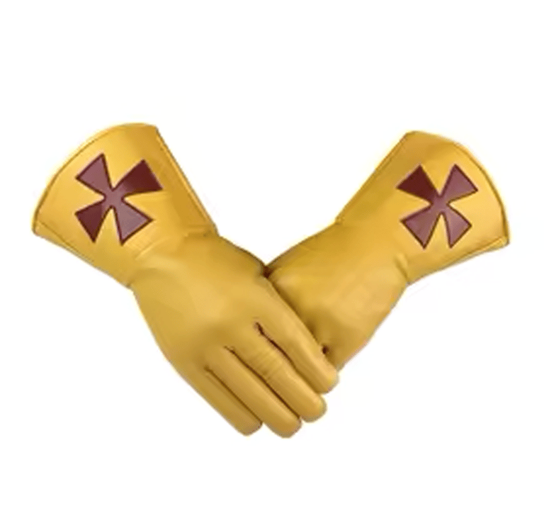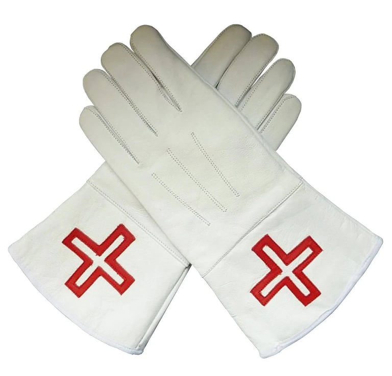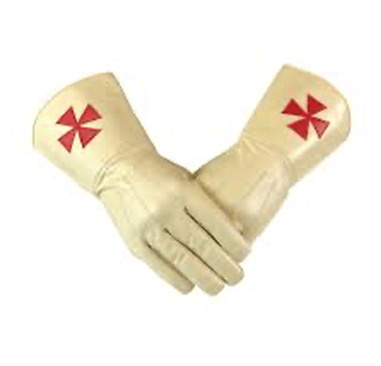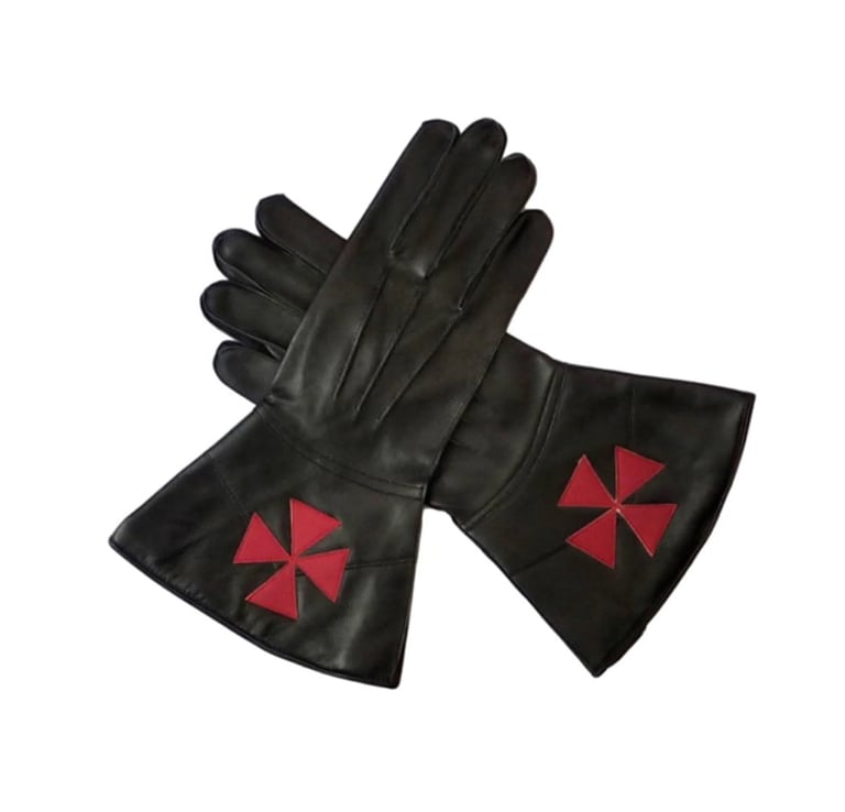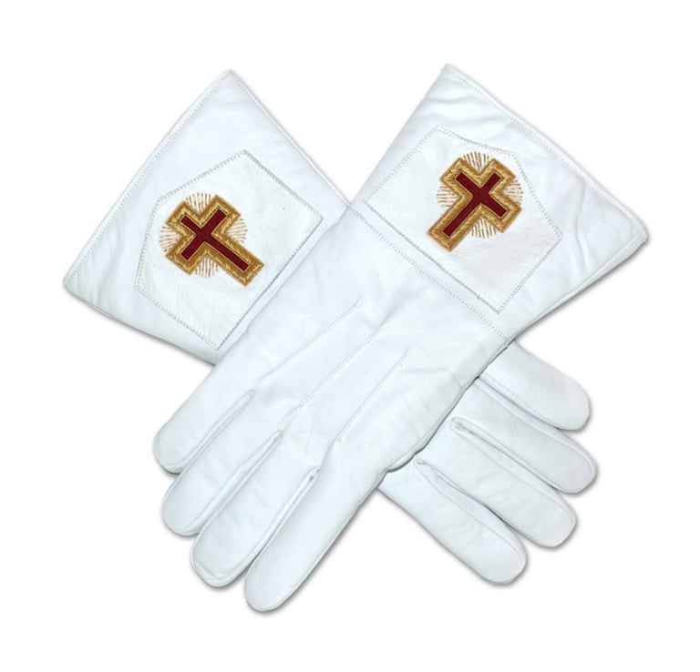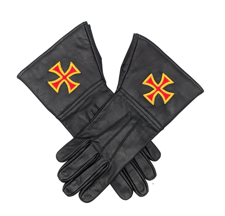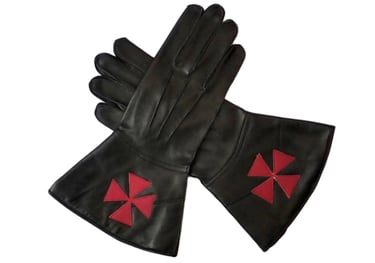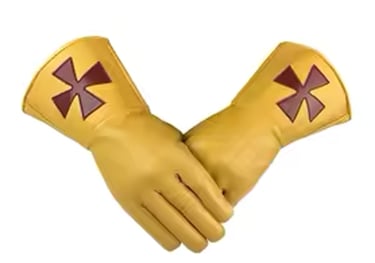 Masonic Knights Templar Commandery Gauntlet - Buff Leather with Red Maltese Cros