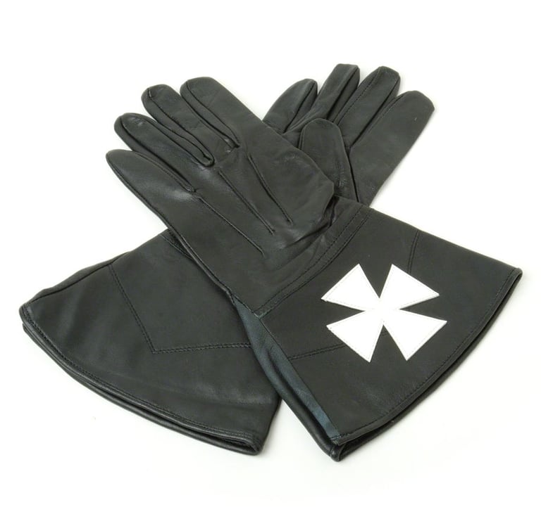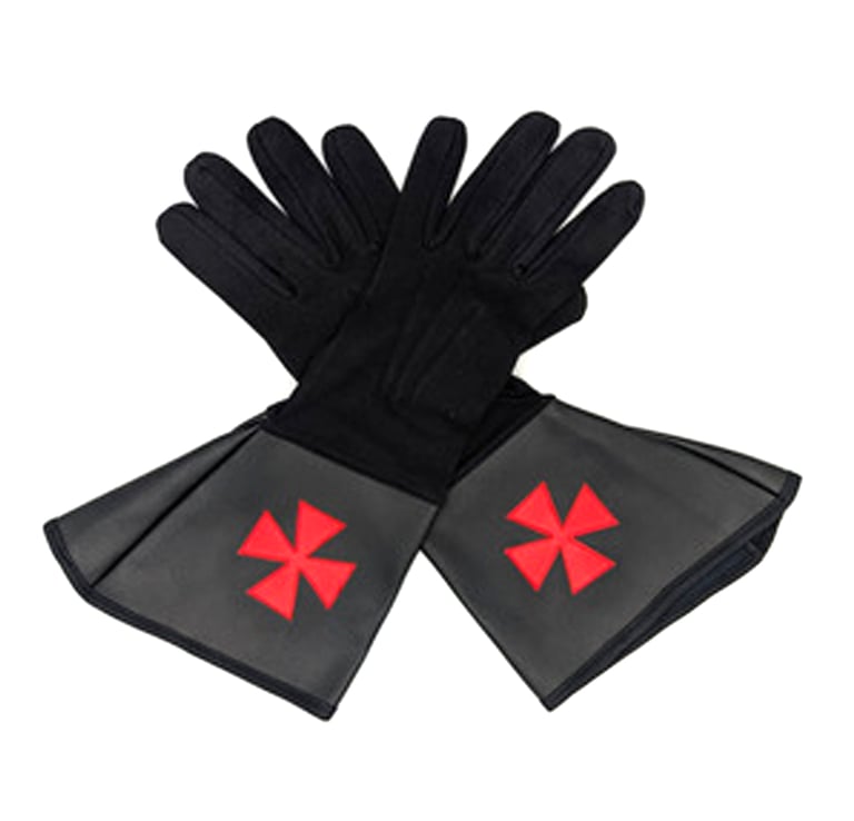Masonic Knights Templar Gauntlets, Black Cotton with Imitation Leather Cuffs
