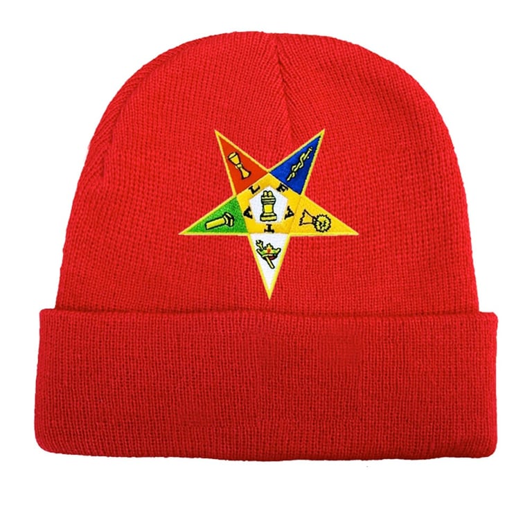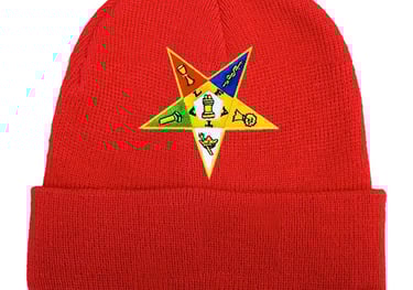 Order of the Eastern Star - Red Beanie Cap with Colorful Standard OES Symbol